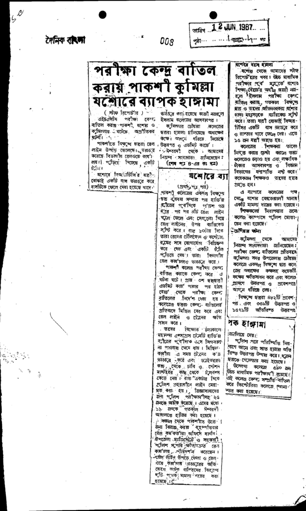 পরীক্ষা কেন্দ্র বাতিল করায় পাকশী কুমিল্লা যশোরে ব্যাপক হাঙ্গামা Published on Newspaper দৈনিক বাংলা Category Public Examination Public Examination Higher Education Download