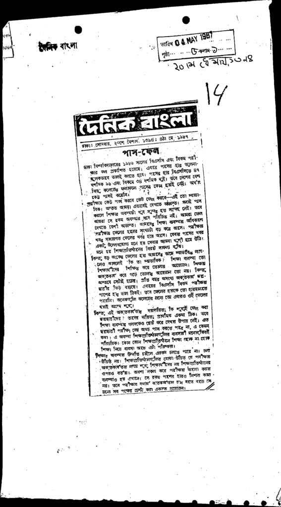 পাস-ফেল Published on Newspaper দৈনিক বাংলা Category Public Examination Public Examination Higher Education Download