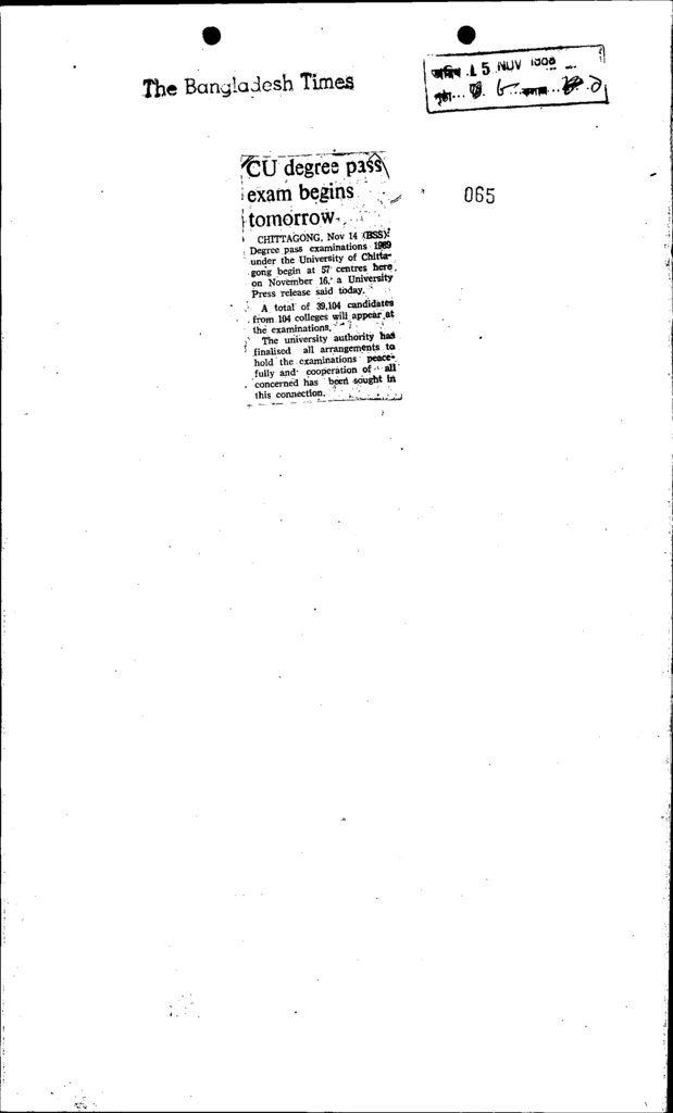 Cu degree pass exam begins tomorrow Published on Newspaper The Bangladesh Times Category Public Examination Public Examination Higher Education Download