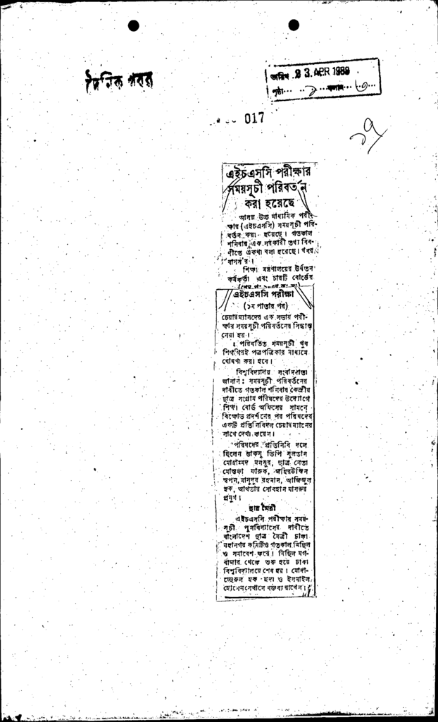 এইচএসসি পরীক্ষার সময়সূচী পরিবর্তন করা হয়েছে Published on Newspaper দৈনিক খবর Category Public Examination Public Examination Higher Education Download
