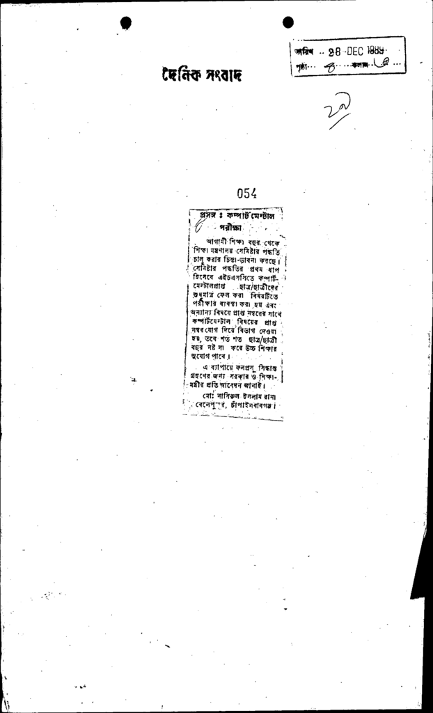 প্রসঙ্গ: কম্পার্টমেন্টাল পরীক্ষা Published on Newspaper দৈনিক সংবাদ Category Public Examination Public Examination Higher Education Download