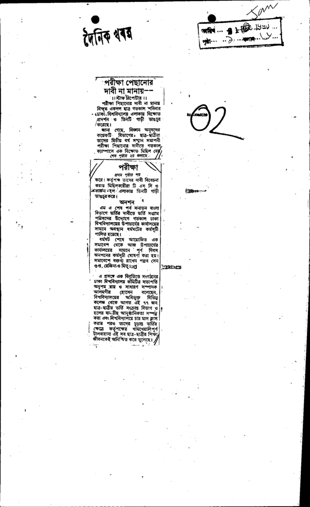 পরীক্ষা পেছানোর দাবী না মানায়- Published on Newspaper দৈনিক খবর Category Public Examination Public Examination Higher Education Download