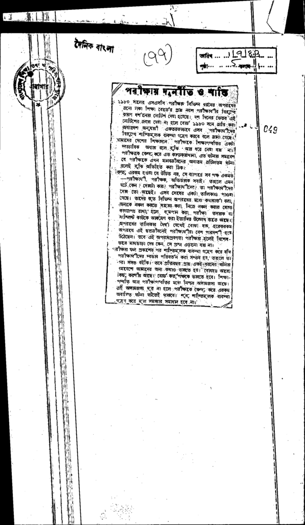 পরীক্ষায় দুর্নীতি ও শাস্তি Published on Newspaper দৈনিক বাংলা Category Public Examination Public Examination Others Download
