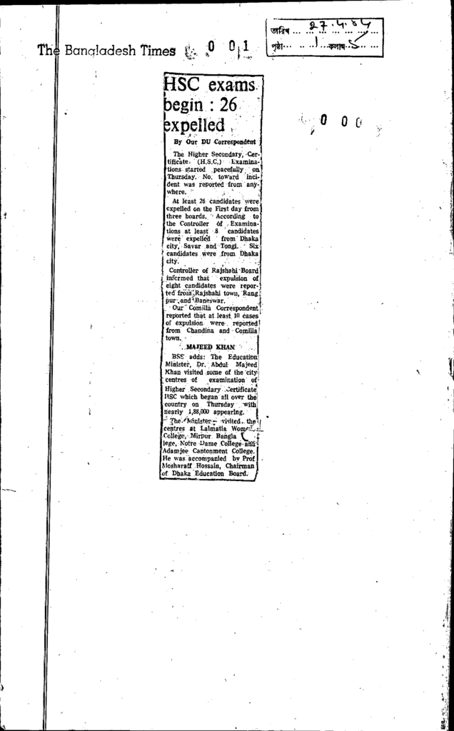 Hsc exams begin : 26 expelled Published on Newspaper The Bangladesh Times Category Public Examination Public Examination Others Download