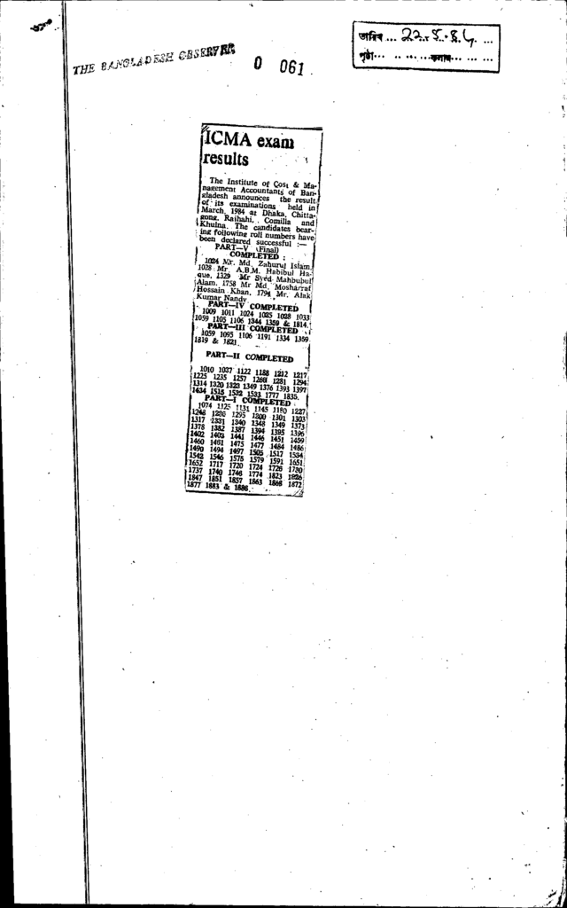 Icma exam results Published on Newspaper The Bangladesh Observer Category Public Examination Public Examination Others Download