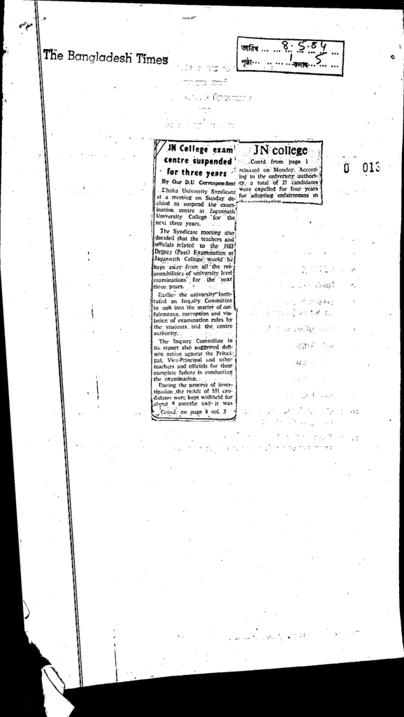 Jn college exam centre suspended for three years Published on Newspaper The Bangladesh Times Category Public Examination Public Examination Others Download