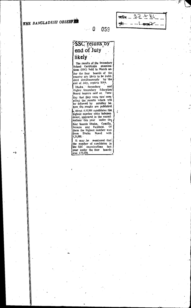 Ssc results by end of july likely Published on Newspaper The Bangladesh Observer Category Public Examination Public Examination Others Download