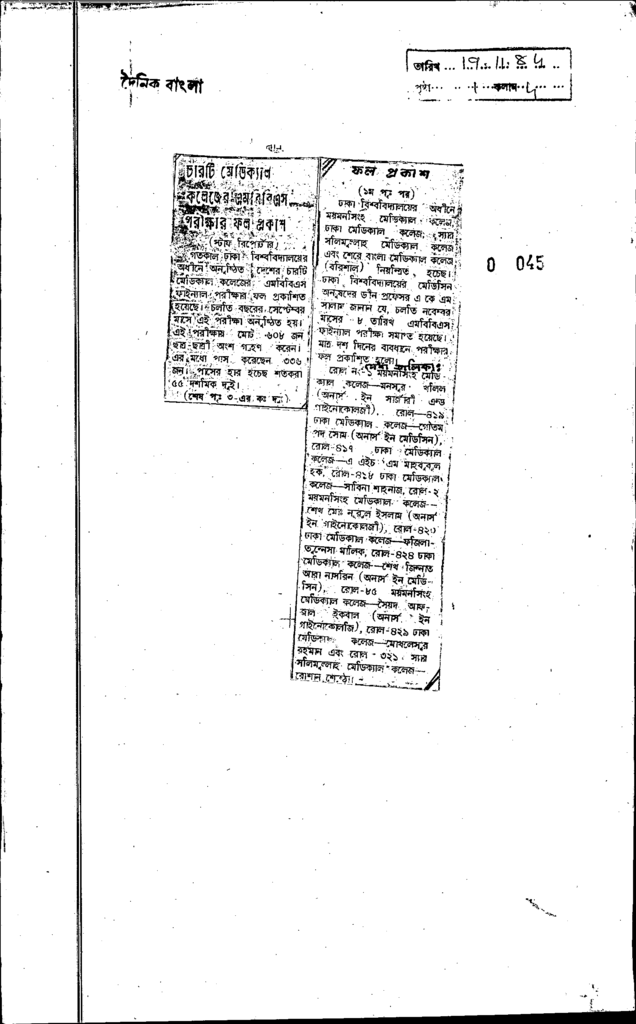 চারটি মেডিক্যাল কলেজের এমবিবিএস পরীক্ষার ফল প্রকাশ Published on Newspaper দৈনিক বাংলা Category Public Examination Public Examination Others Download