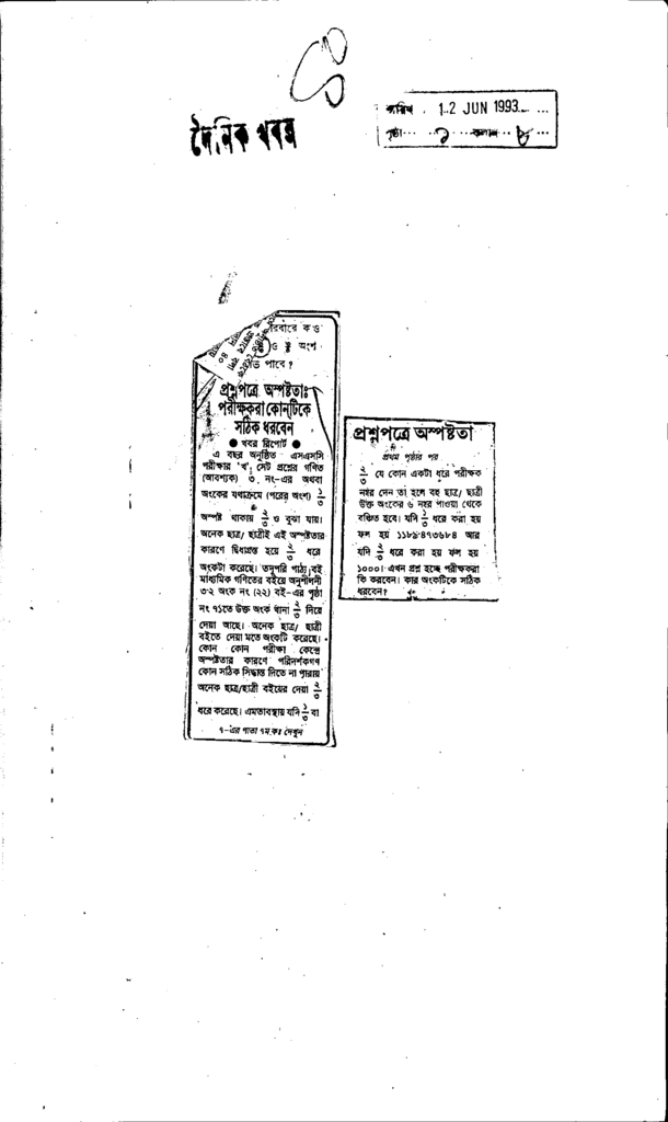 প্রশ্নপত্রে অস্পষ্টতাঃ পরীক্ষকরা কোনটিকে সঠিক ধরবেন Published on Newspaper দৈনিক খবর Category Public Examination Public Examination Others Download