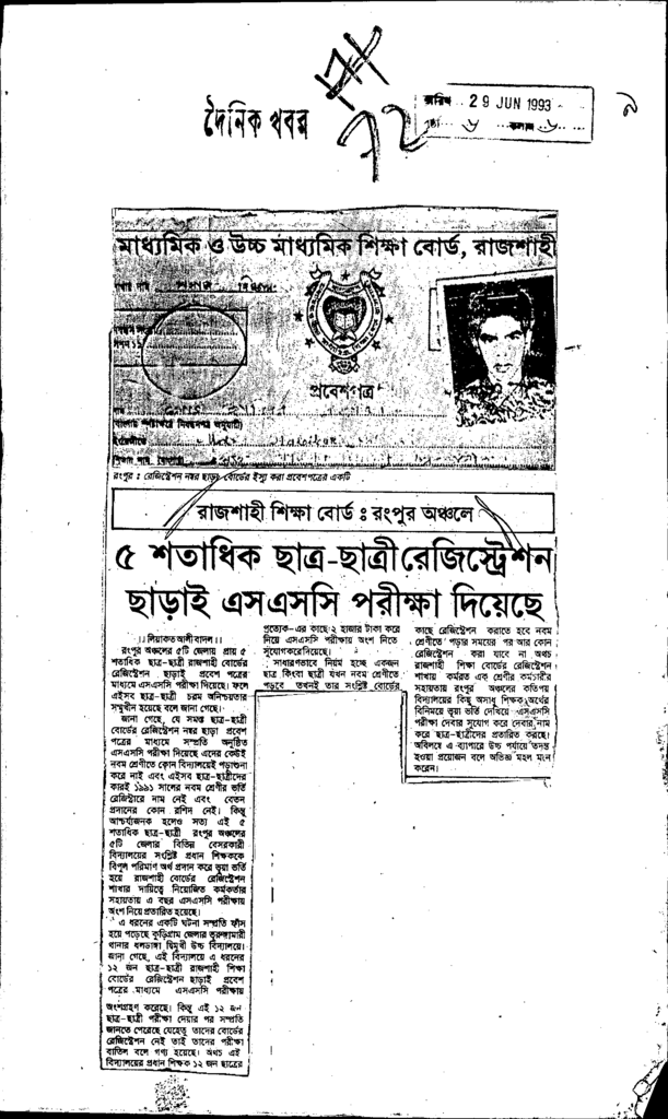 মাধ্যমিক ও উচ্চ মাধ্যমিক শিক্ষা বোর্ড, রাজশাহী Published on Newspaper দৈনিক খবর Category Public Examination Public Examination Others Download