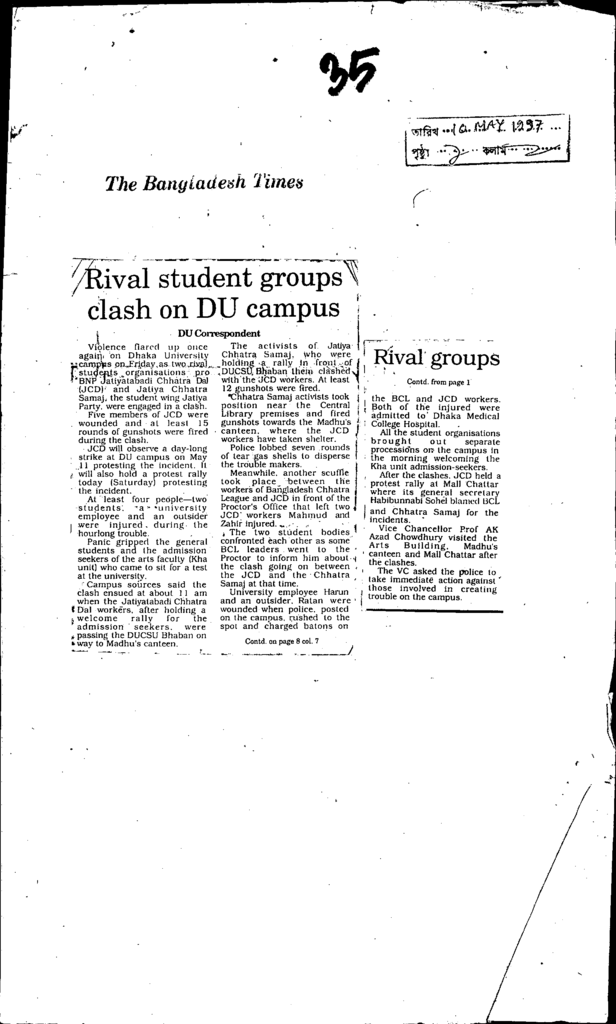 Rival student groups clash on du campus Published on Newspaper The Bangladesh Times Category General Education Download