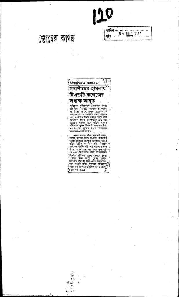 সন্ত্রাসীদের হামলায় টিএন্ডটি কলেজের অধ্যক্ষ আহত Published on Newspaper দৈনিক ভোরের কাগজ Category General Education Download