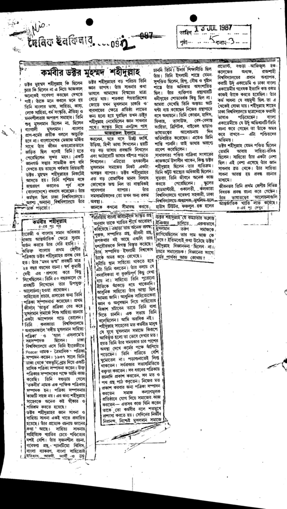 কর্মবীর ডক্টর মুহম্মদ শহীদুল্লাহ Published on Newspaper দৈনিক ইনকিলাব Category General Education Download