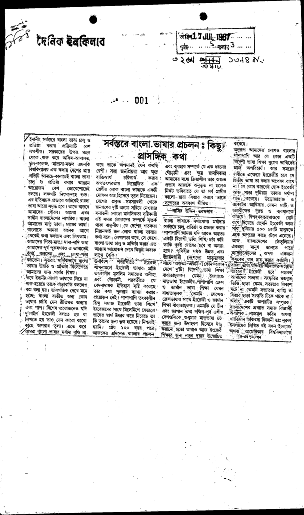 সর্বস্তরে বাংলা ভাষার প্রচলনঃ কিছু প্রাসঙ্গিক কথা
