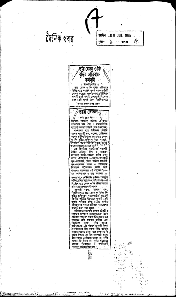 ছাত্র বেতন ও ফি বৃদ্ধির প্রতিবাদে কর্মসূচী