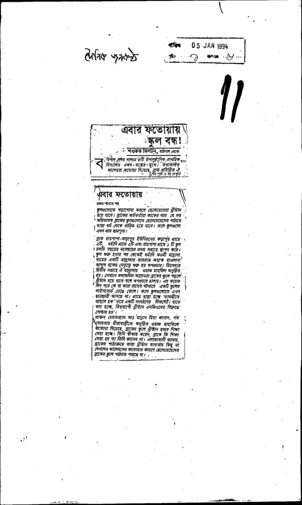 এবার ফতোয়ায় স্কুল বন্ধ !