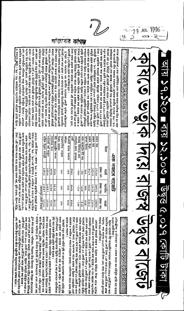 কৃষিতে ভর্তুকি দিয়ে রাজস্ব উদ্বৃত্ত বাজেট