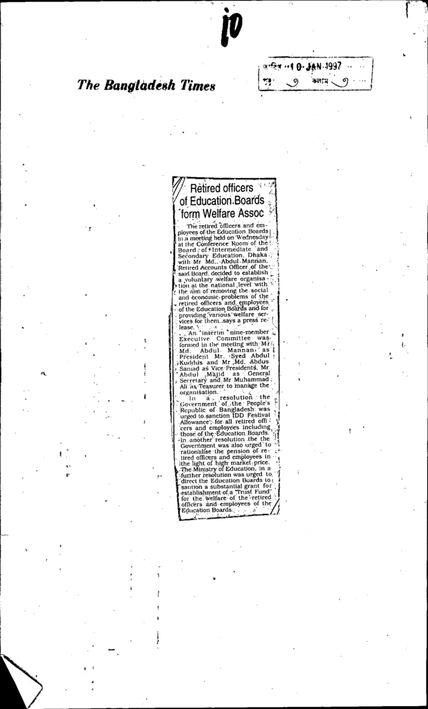 Retired officers of education boards from wealfare assoc Published on Newspaper The Bangladesh Times Category General Education Download