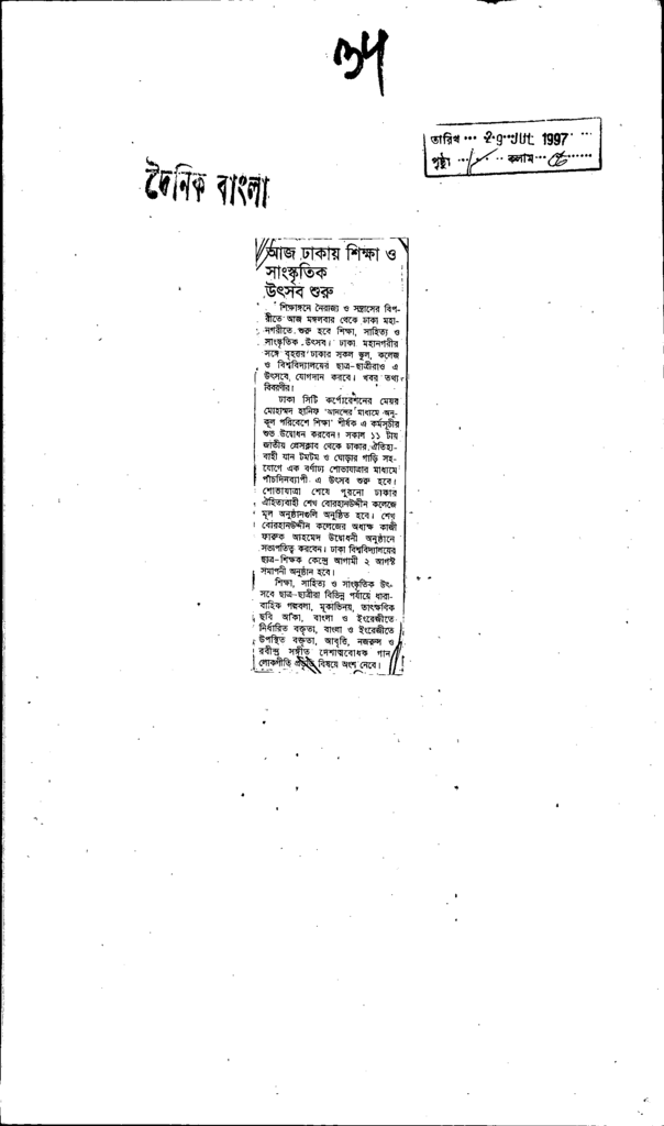 আজ ঢাকায় শিক্ষা ও সাংস্কৃতি উৎসব শুরু Published on Newspaper দৈনিক বাংলা Category General Education Download