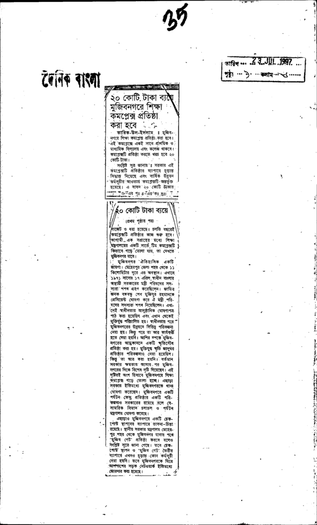 ২০ কোটি টাকা ব্যায়ে মুজিবনগরে শিক্ষা কমপ্লেক্স প্রতিষ্ঠা করা হবে Published on Newspaper দৈনিক বাংলা Category General Education Download