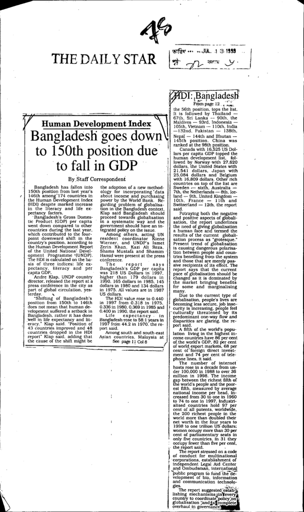 Bangladesh goes down to 150th position due to fail in gdp Published on Newspaper The Daily Star Category General Education Download