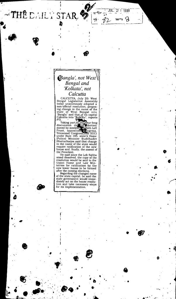 Bangla not west bengal and kolkata not calautta