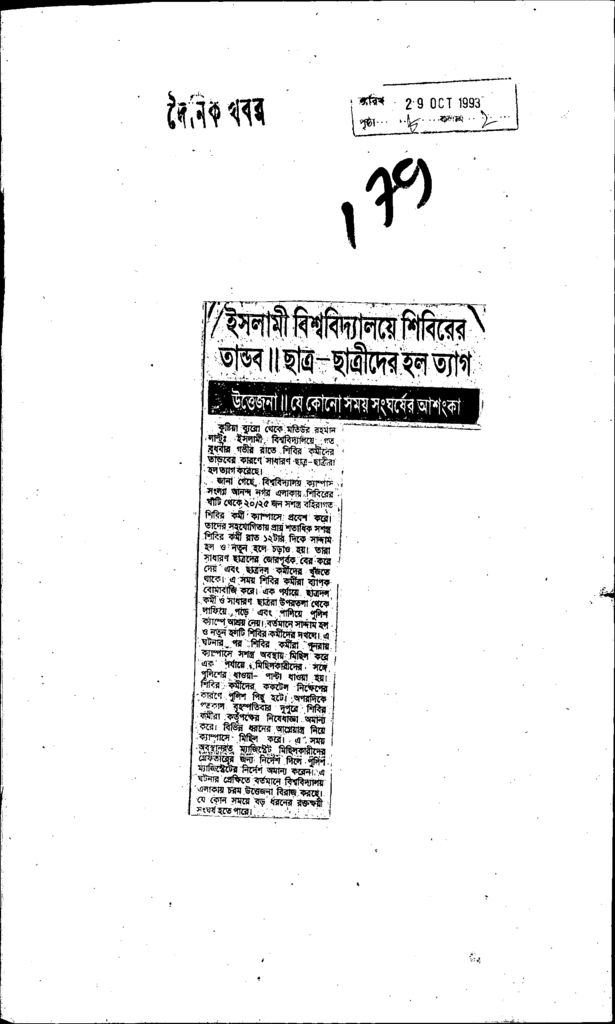ইসলামী বিশ্ববিদ্যালয়ে শিবিরের তাণ্ডব।। ছাত্র-ছাত্রীদের হল ত্যাগ