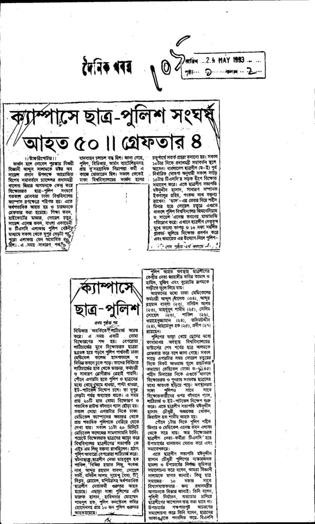 ক্যাম্পাসে ছাত্র - পুলিশ সংঘর্ষ আহত ৫০ ।। গ্রেফতার ৪ Published on Newspaper দৈনিক খবর Category General Education Download