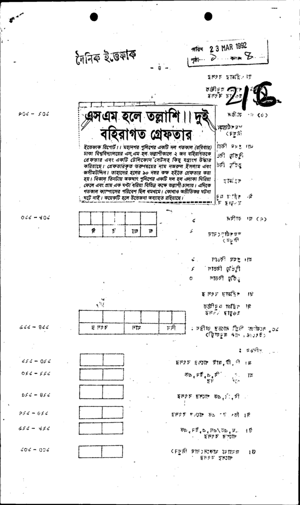 এসএম হলে তল্লাশি ।। দুই বহিরাগত গ্রেফতার Published on Newspaper দৈনিক ইত্তেফাক Category Campus Terrorism Download