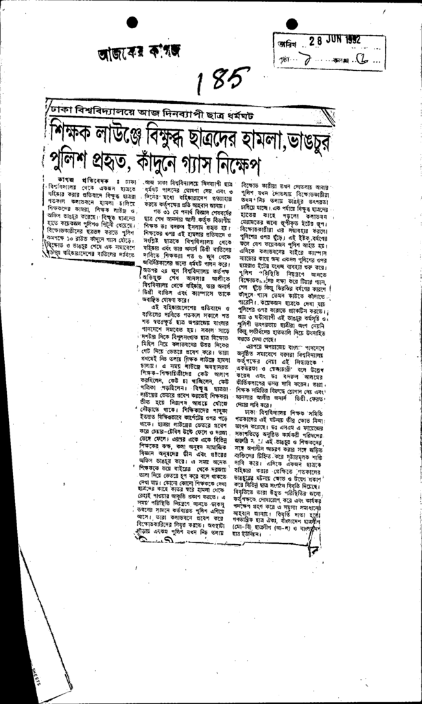 ঢাকা বিশ্ববিদ্যালয়ে আজ দিনব্যাপী ছাত্র ধর্মঘট Published on Newspaper দৈনিক আজকের কাগজ Category Campus Terrorism Download