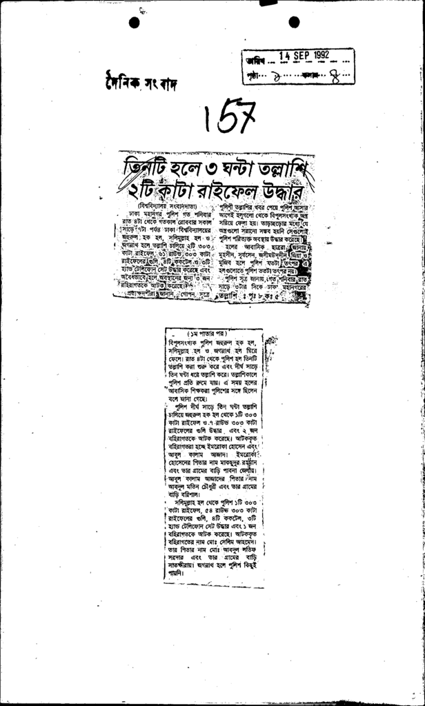 তিনটি হলে ৩ ঘনটা তল্লাশি ২টি কাটা রাইফেল উদ্ধার Published on Newspaper দৈনিক সংবাদ Category Campus Terrorism Download