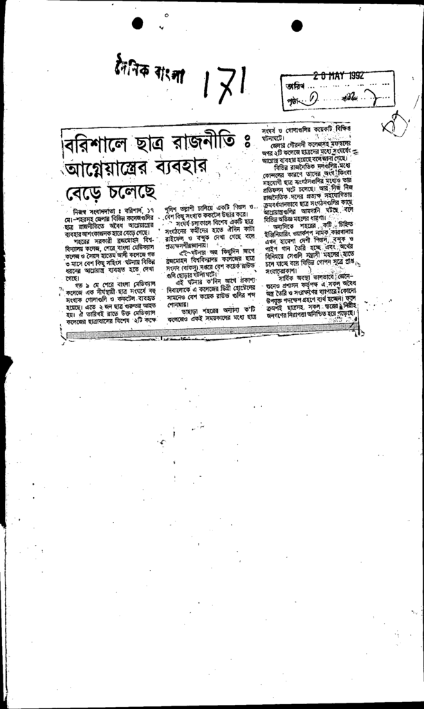 বরিশালে ছাত্র রাজনীতিঃআগ্নেয়াস্ত্রের ব্যবহার বেড়ে চলেছে