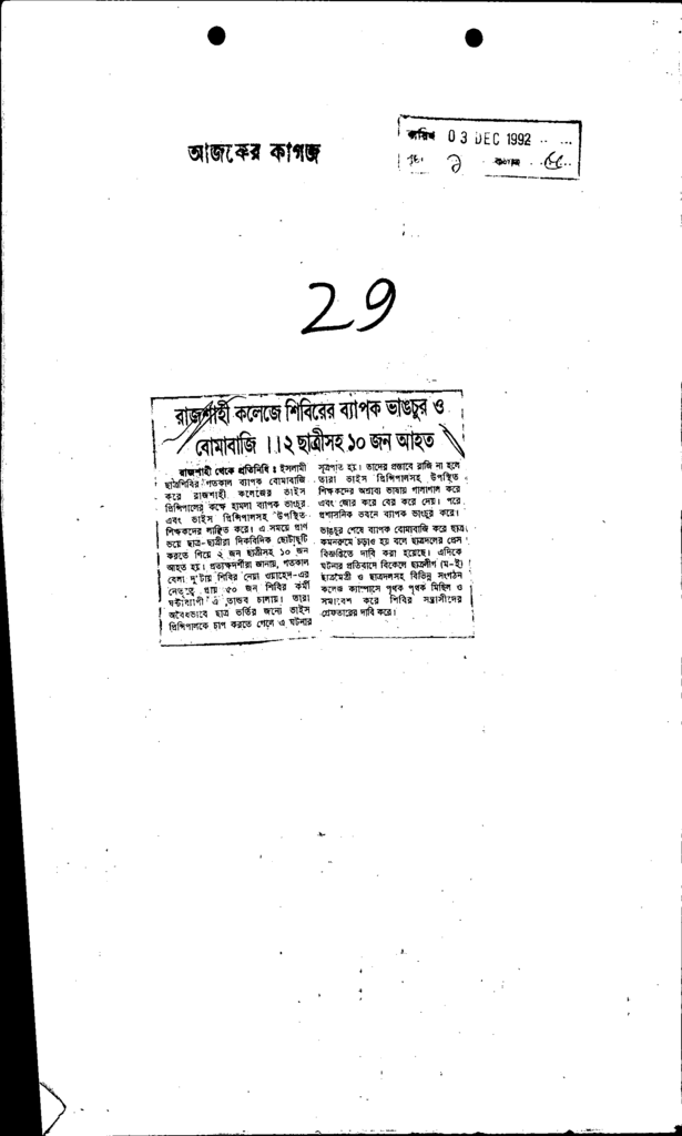 রাজশাহী কলেজে শিবিরের ব্যাপক ভাঙচুর ও বোমাবাজি । । ২ ছাত্রীসহ ১০জন আহত Published on Newspaper দৈনিক আজকের কাগজ Category Campus Terrorism Download