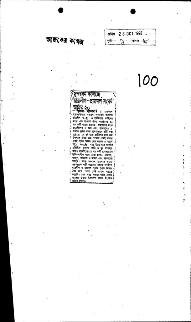 সুন্দরবন কলেজে ছাত্রদল সংঘর্ষ আহত ২০ Published on Newspaper দৈনিক আজকের কাগজ Category Campus Terrorism Download
