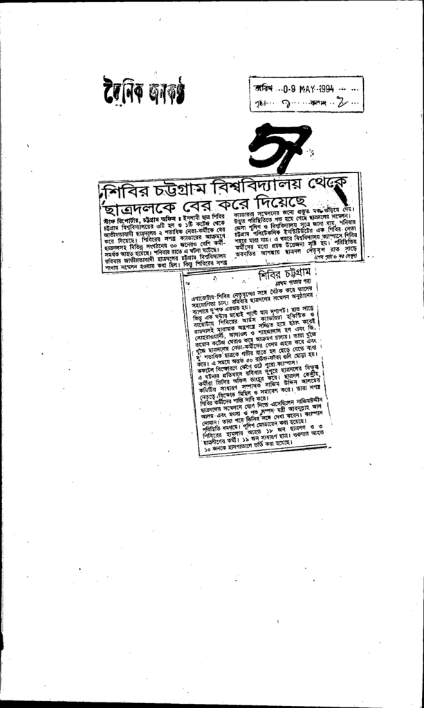 শিবির চট্রগ্রাম বিশ্ববিদ্যালয় থেকে ছাত্রদলকে বের করে দিয়েছে Published on Newspaper দৈনিক জনকণ্ঠ Category General Education Download