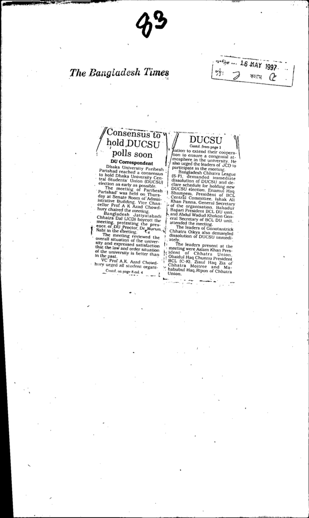 Consensus to hold ducsu polls soon Published on Newspaper The Bangladesh Times Category Educational Ministry / Departments Download