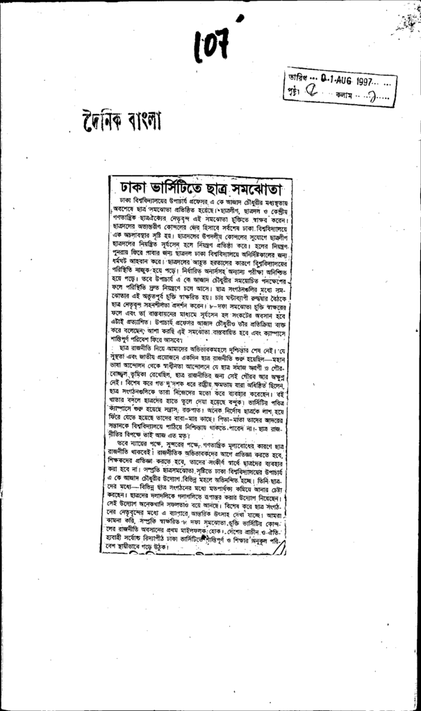 ঢাকা ভার্সিটিতে ছাত্র সমঝোতা Published on Newspaper দৈনিক বাংলা Category Educational Ministry / Departments Download
