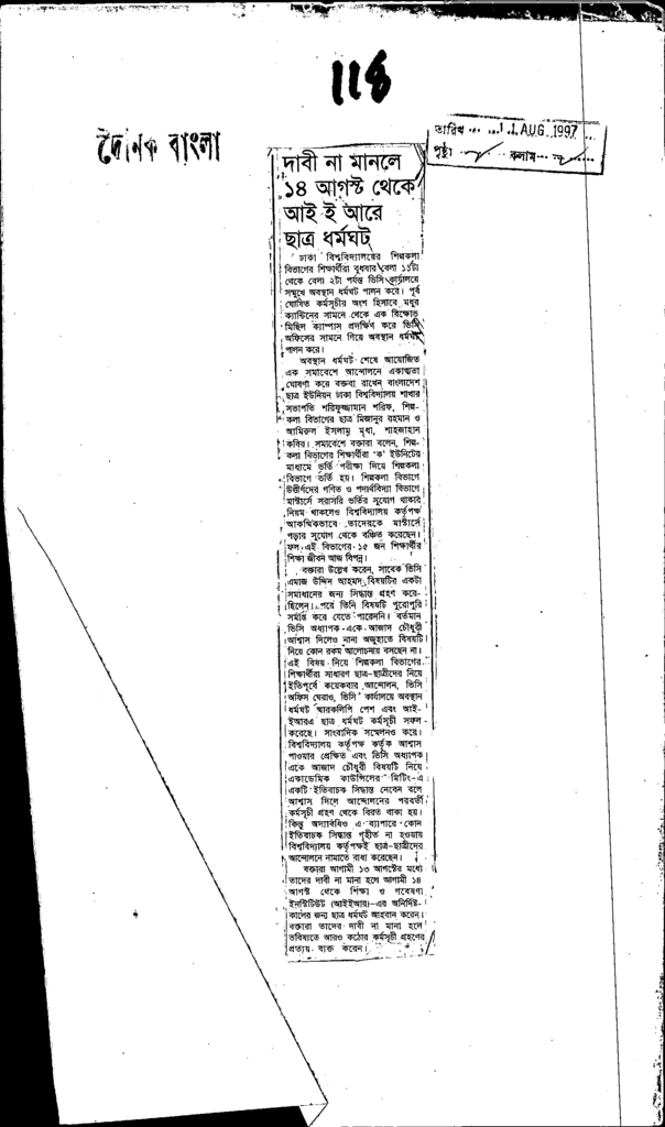 দাবী না মানলে ১৪ আগষ্ট থেকে আইই আরে ছাত্র ধর্মঘট