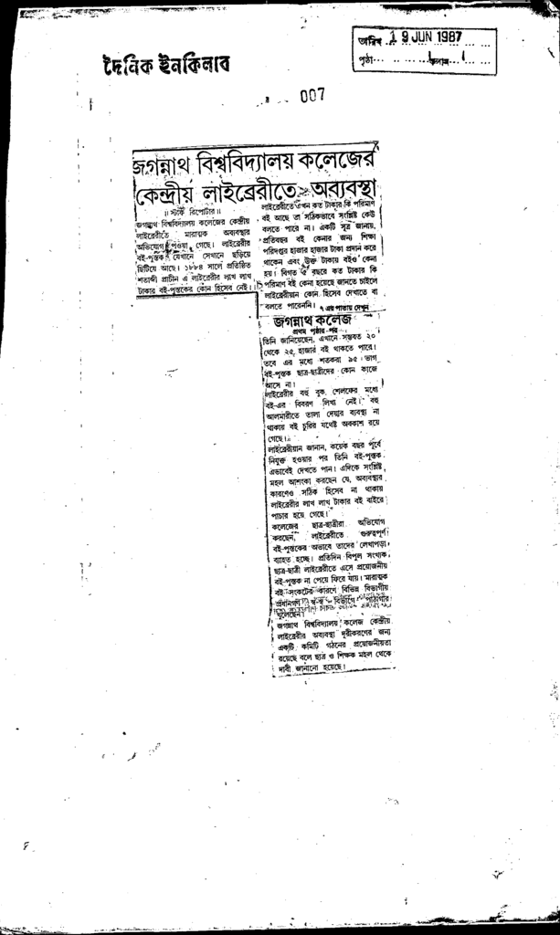 জগন্নাথ বিশ্ববিদ্যালয় কলেজের কেন্দ্রী লাইব্রেরীতে অব্যবস্থা Published on Newspaper দৈনিক ইনকিলাব Category General Education General Education Download