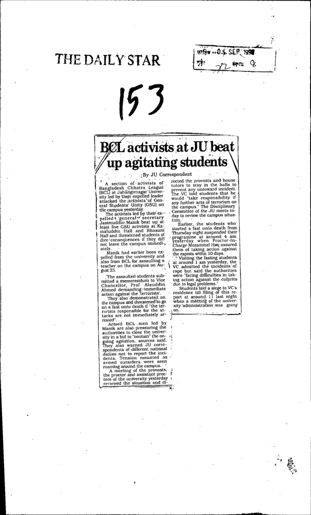 Bcl activists at ju beatg up agitationg students Published on Newspaper The Daily Star Category Student Politics Download