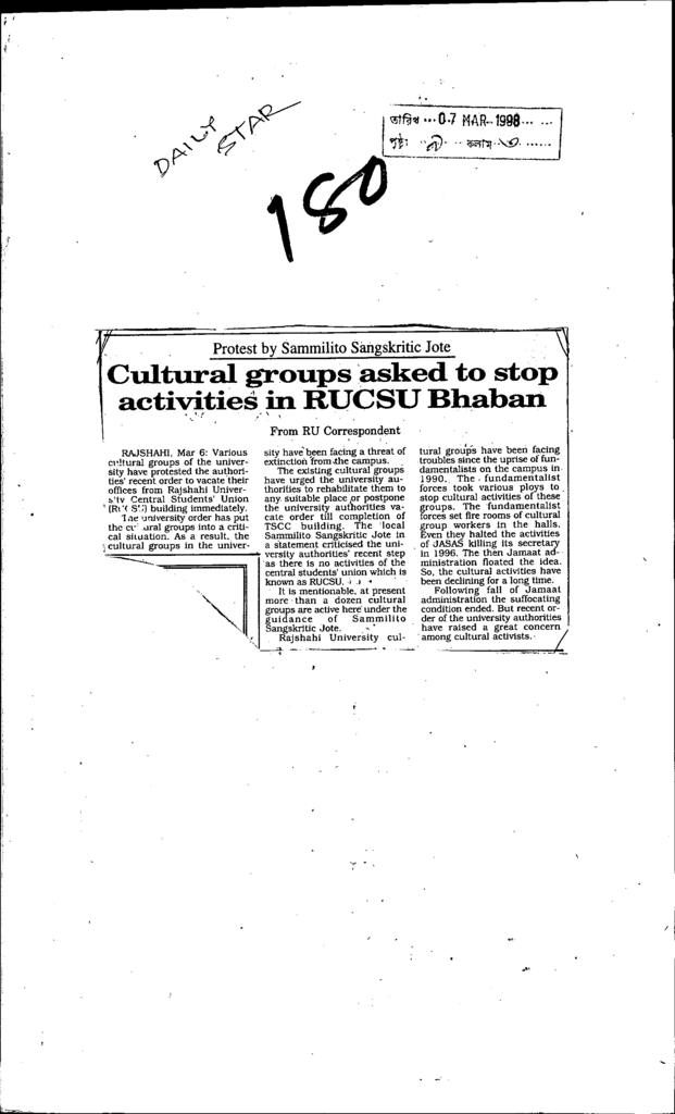 Cultral groups asked to stop activities in rucsu bhaban Published on Newspaper The Daily Star Category Personal Opinion / Discussion / Commentary Download