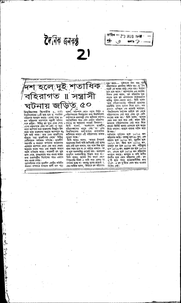 দশ হলে দই শতাধিক বহিরাগত্ । সন্ত্রাসী ঘটনায় জড়িত ৫০ Published on Newspaper দৈনিক জনকণ্ঠ Category Campus Terrorism Download