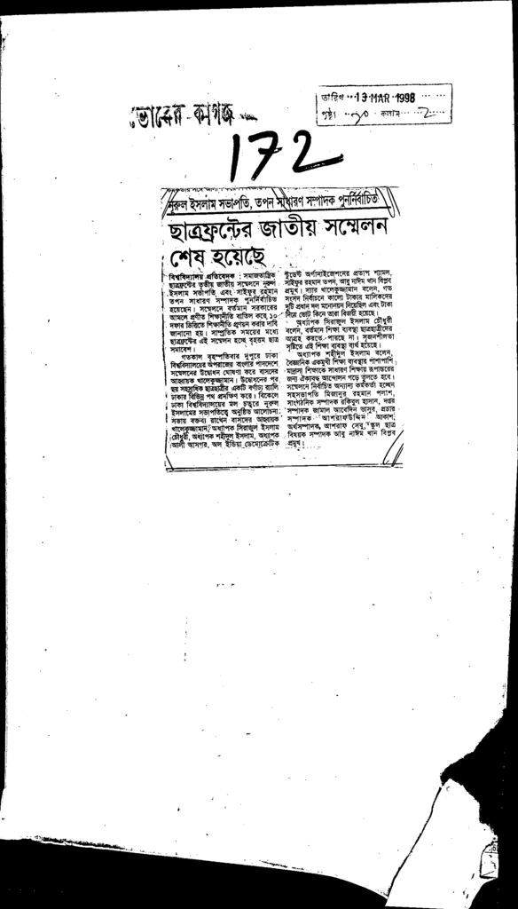 নূরুল ইসলাম সবাপতি ম তপণ সাধারণ সম্পদক পুনবির্বাচিত ছাত্রফ্রন্টের জাতীয় সম্মেলন শেষ হয়েছে Published on Newspaper দৈনিক ভোরের কাগজ Category Student Politics Download