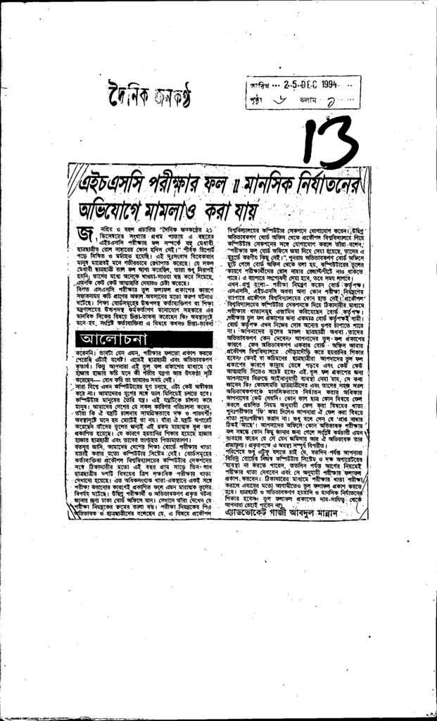 এইচএসসি পরীক্ষার ফল!! মানসিক নির্যাতনের অভিযোগে মামলাও করা যায় Published on Newspaper দৈনিক জনকণ্ঠ Category Public Examination Public Examination Others Download