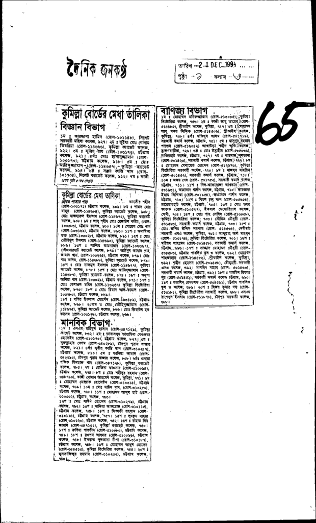 কুমিল্লা বোর্ডের মেধা তালিকা বিজ্ঞান বিভাগ Published on Newspaper দৈনিক জনকণ্ঠ Category Public Examination Public Examination Others Download