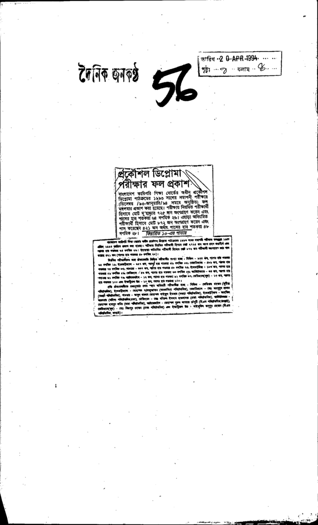 প্রকৌশল ডিপ্লোমা পরীক্ষার ফল প্রকাশ Published on Newspaper দৈনিক জনকণ্ঠ Category Public Examination Public Examination Others Download