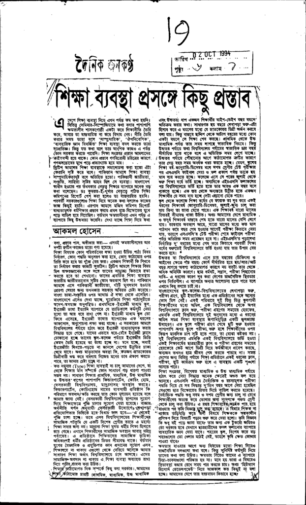শিক্ষা ব্যবস্থা প্রসঙ্গে কিছু প্রস্তাব Published on Newspaper দৈনিক জনকণ্ঠ Category Public Examination Public Examination Others Download
