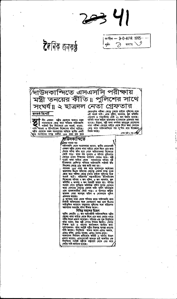 দাউদকান্দিতে এসএসসি পরীক্ষায় মন্ত্রী তনয়ের র্কীতি!! পুলিশের সাথে সংঘর্ষ!! 2 ছাত্রদল নেতা গ্রেফতার Published on Newspaper দৈনিক জনকণ্ঠ Category Public Examination Public Examination Others Download