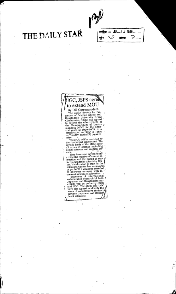 UGC,JSPS agree to extend MOU Published on Newspaper The Daily Star Category General Education Download