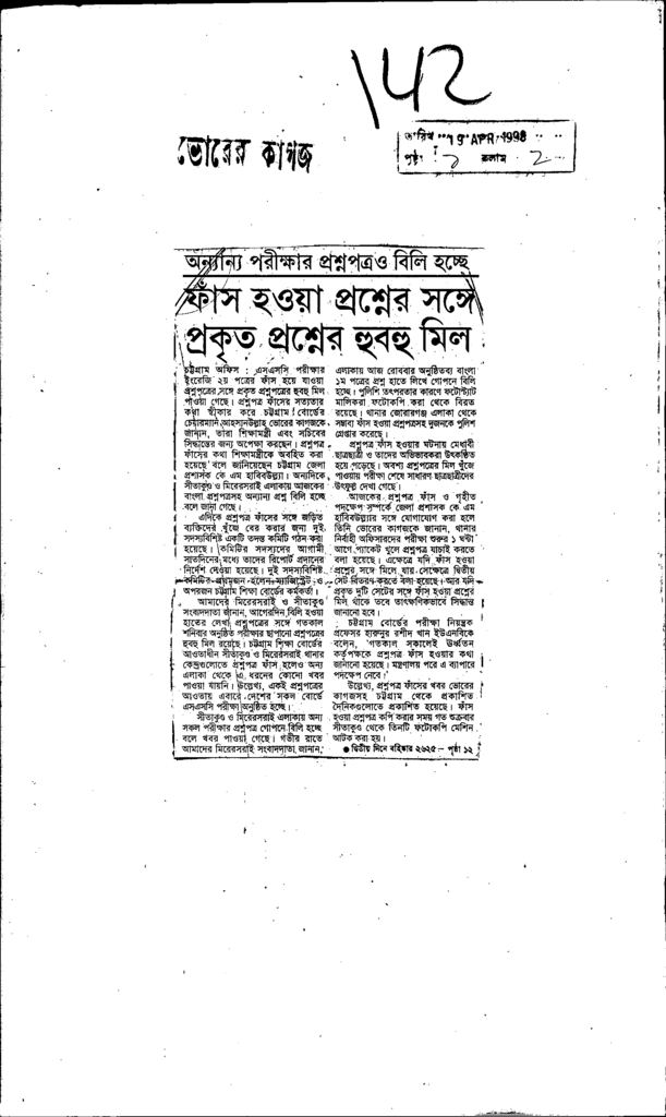 ফাঁস হওয়া প্রশ্নের সঙ্গে প্রকৃত প্রশ্নের হুবহু মিল Published on Newspaper দৈনিক ভোরের কাগজ Category Public Examination Public Examination Others Download